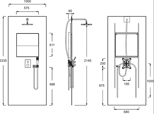 • Возможна угловая установка на душевой поддон (как встраиваемый, так и напольный), а также установка на плитку