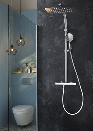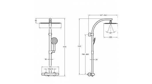 - Душевая колонна с термостатическим смесителем, верхним и ручным душем