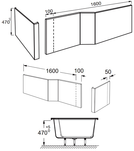 Объединенные фронтальная и боковая панели для ванны