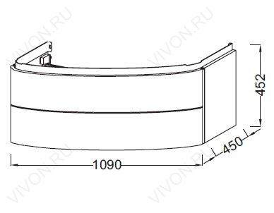 Описание: изящество подвесной тумбы подчеркивается плавными изгибами фасадов двух выдвижных ящиков с доводчиками и скрытыми ручками. В комплект входит белоснежная фарфоровая раковина Presquile E4435 (130х50 см).