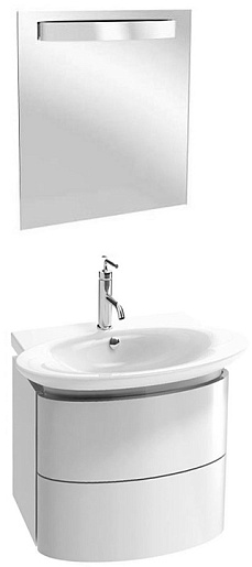 Описание: изящная подвесная тумба с закругленным фасадом. Два выдвижных ящика с доводчиками и механизмом push-to-open. В комплект входит фарфоровая раковина Presquile E4438 (арт. E4438).