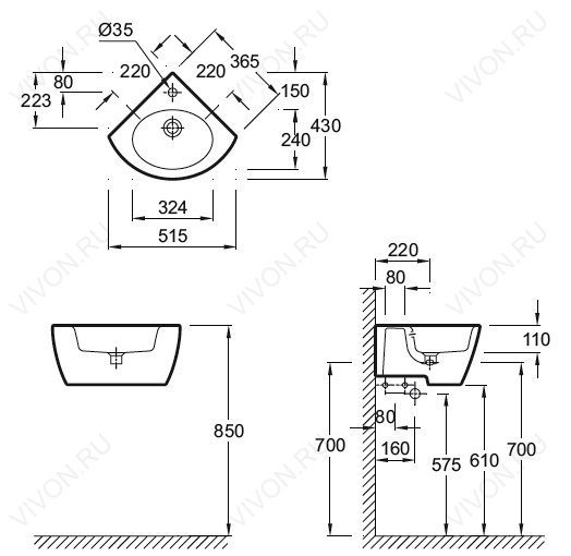 Раковина подвесная арт. E1566: