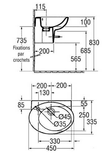 Раковина подвесная с полупьедесталом арт. E1337:
