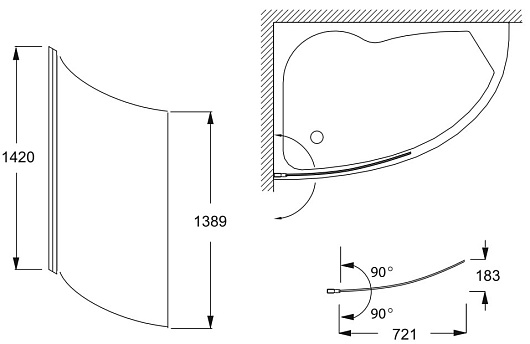 Комплектация: шторка для ванны.