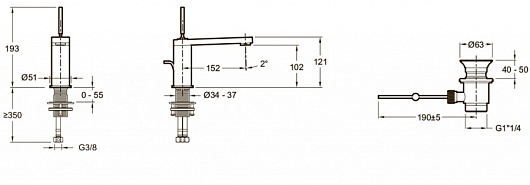 Высота излива, мм: