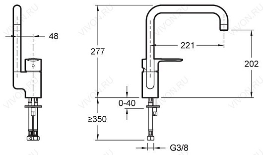 - длина излива 221 мм