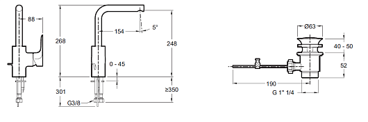 Высота излива, мм: