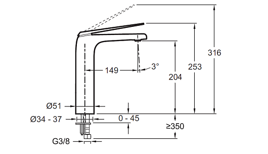 Высота излива, мм: