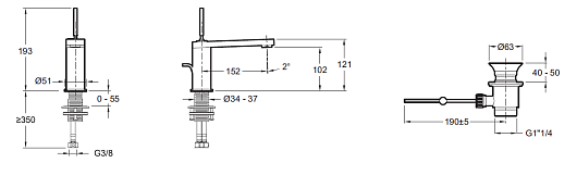 Высота излива, мм: