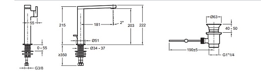 Высота излива, мм: