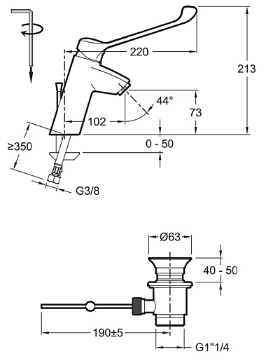 - монтаж на одно отверстие