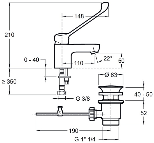 Высота излива, мм: