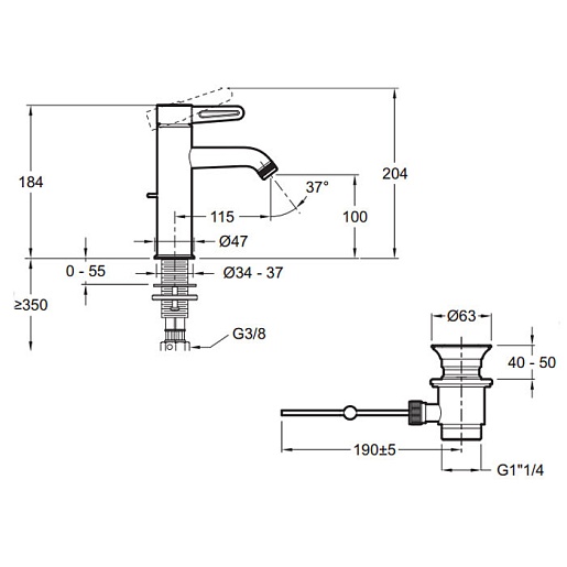 - Донный клапан в комплекте