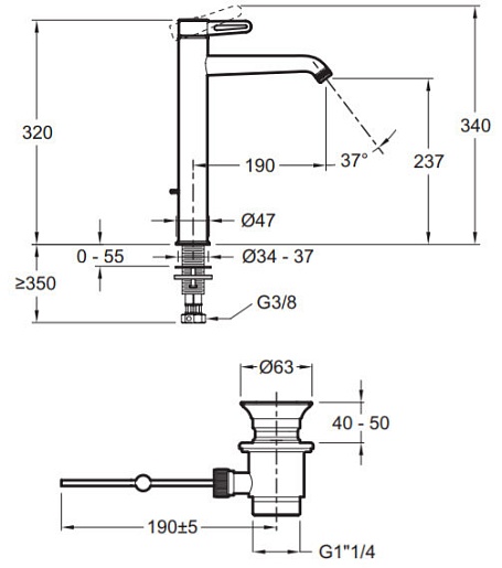 - Донный клапан в комплекте