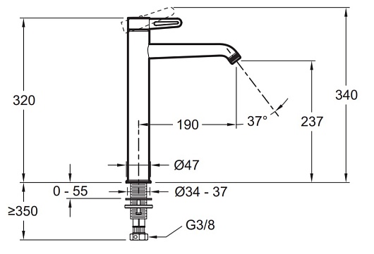 Высота излива, мм: