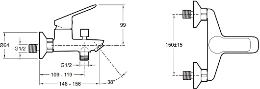 - Ограниченный поток воды 12 л/мин для душа и 22 л/мин для излива.