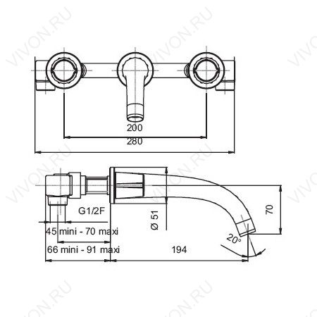 Длина излива, мм: