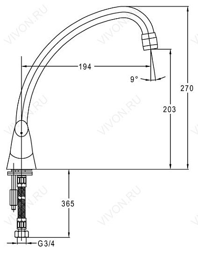 - длина излива 270 мм