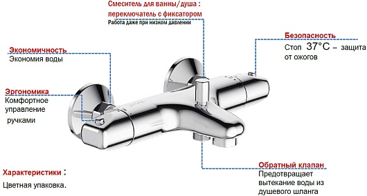- обратный клапан - предотвращает вытекание воды из душевого шланга