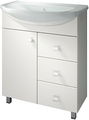 - тумба под раковину: распашная дверца, 3 выдвижных ящика, металлические ручки (хром), ножки