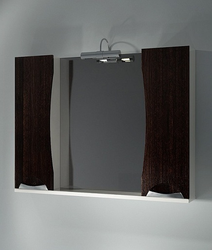Комплектация: Зеркальное полотно с нижней полкой может быть дополнено светильником. Слева и справа распашные ящики с внутренними полками.