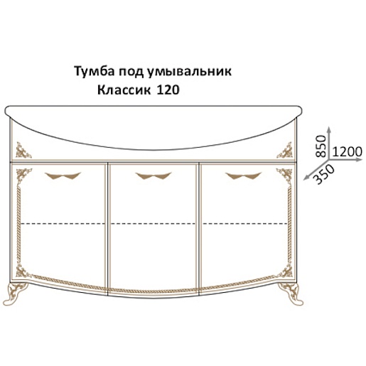 Тумба для умывальника Классик-Д 120 бежевый/золото