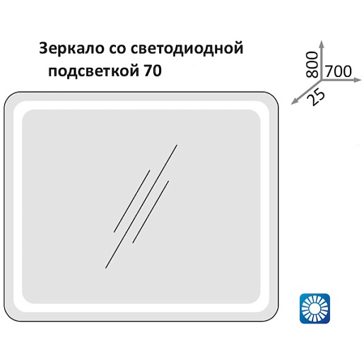 Комплектация: влагостойкое зеркальное полотно с LED подсветкой.