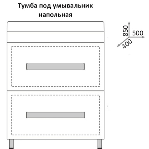 - тумба под раковину: 2 выдвижных ящика, металлические ручки (хром), ножки