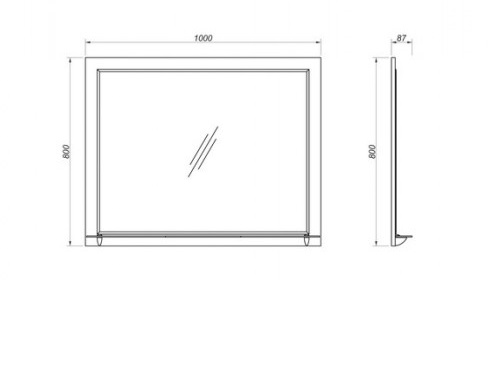 Зеркало по желанию может быть дополнено стеклянной полкой размером 550*100*5 мм, которая крепится к основе зеркала на кронштейнах типа «Пеликан».