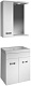 Комплектация: зеркальное полотно с нижней полкой, козырьком с галогеновым светильником и выключателем. Слева расположен распашной шкаф с вкладными полками и хромированной металлической врезной ручкой.