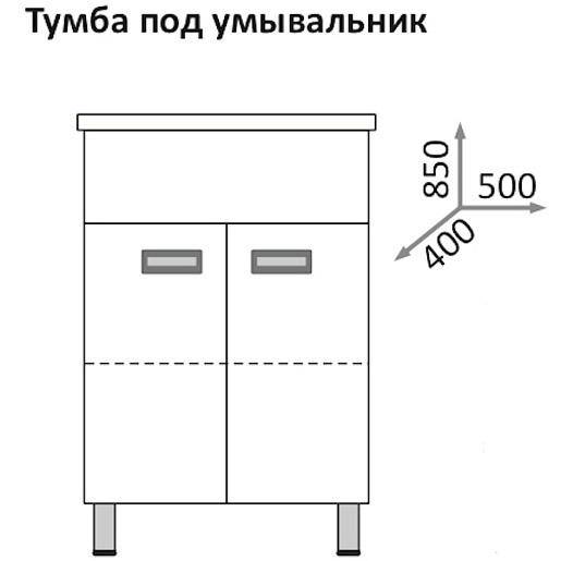 - тумба под раковину: 2 распашные дверцы, врезные металлические ручки (хром), ножки