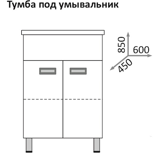 - тумба под раковину: 2 распашные дверцы, врезные металлические ручки (хром), ножки