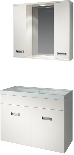 Комплектация: зеркальное полотно с встроенной подсветкой, шкафчики, полочка.