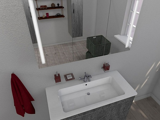 Комплектация: зеркальное полотно с встроенной подсветкой, шкафчик.