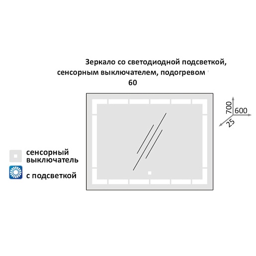Комплектация: влагостойкое зеркальное полотно с LED подсветкой, сенсор, подогрев.