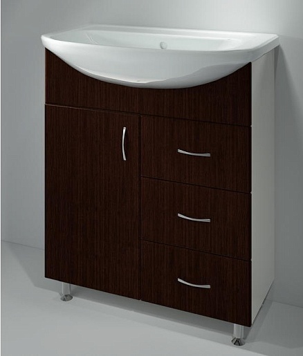 - тумба под раковину: распашная дверца, 3 выдвижных ящика, металлические ручки (хром), ножки