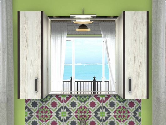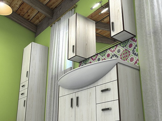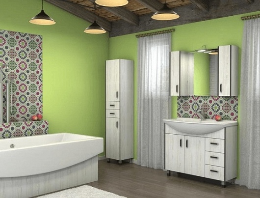 Описание: влагостойкое зеркальное полотно, шкафчики.