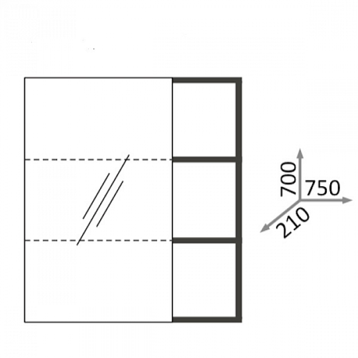 Описание: влагостойкое зеркальное полотно, шкафчик, полочки.