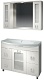 Комплектация: Зеркальное полотно с нижней полкой и козырьком с встроенным галогеновым светильником и выключателем. Слева и справа распашные ящики с внутренними полками.