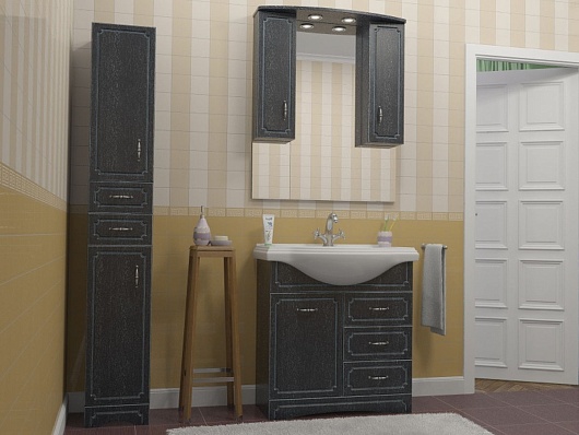 Какса-а Пенал для ванной Патина 30 черный с белым