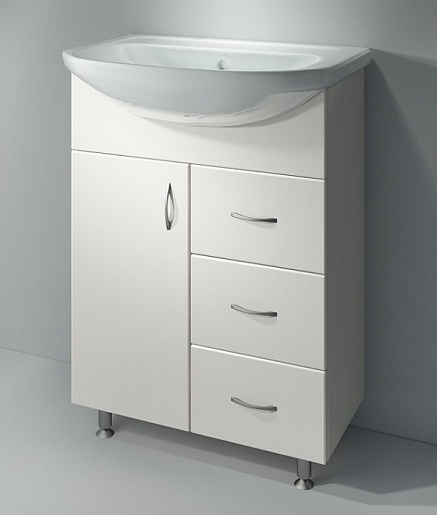- тумба под раковину: распашная дверца, 3 выдвижных ящика, металлические ручки (хром), ножки