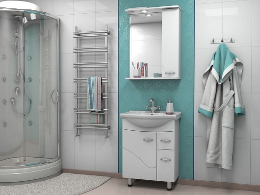 - тумба под раковину: распашные дверцы, выдвижной ящик, металлические ручки (хром), ножки