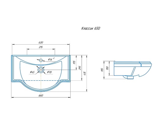 - Умывальник 650 "Классик" -Кировит, фаянс, белая