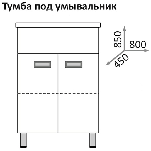 - тумба под раковину: 2 распашные дверцы, врезные металлические ручки (хром)