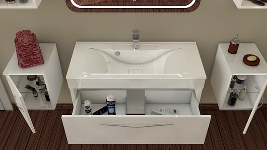 - тумба под раковину: выдвижной ящик, металлическая ручка
