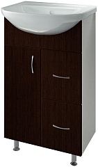- тумба под раковину: распашная дверца, 2 выдвижных ящика, металлические ручки (хром), ножки