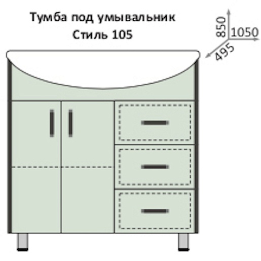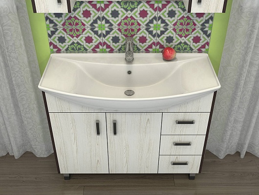 - Тумба под раковину Винтер 105 с распашным фасадом и ящиками.