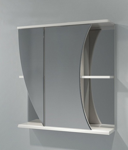 Комплектация: Распашные зеркальные дверцы асимметричной формы. Справа и слева полки.