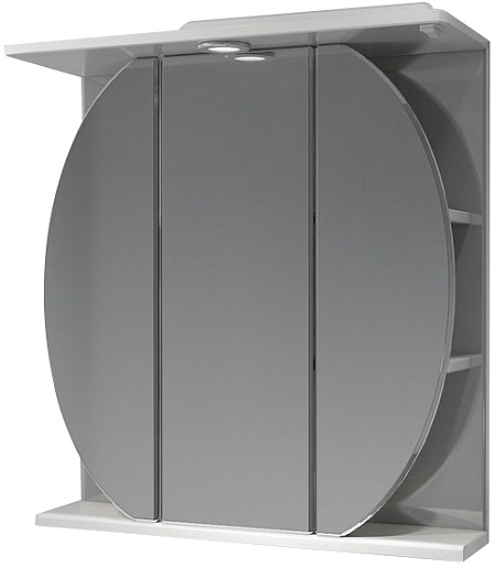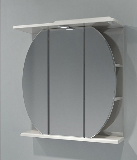 Комплектация: Распашной зеркальные дверцы в виде шара. Слева и справа полки. Козырек с встроенным галогеновым светильником и выключателем.