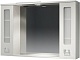 Комплектация: Зеркальное полотно с нижней полкой и козырьком с встроенным галогеновым светильником и выключателем. Слева и справа распашные ящики с внутренними полками.